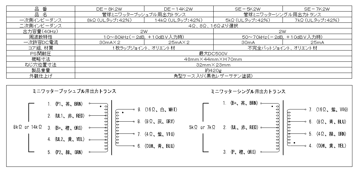 ●DE-8K2W(ミニワッタープッシュプルアンプ用 8kΩUL付:4,8,16Ω 2W)